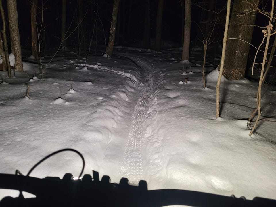 - Last groomed by Jeff on the afternoon of 1/24. Report from Josh: “Tight, twisty, and just loose enough to be exciting. Snow is deep enough to make the snow angels fun, and not painful! 4psi is a good starting point.”