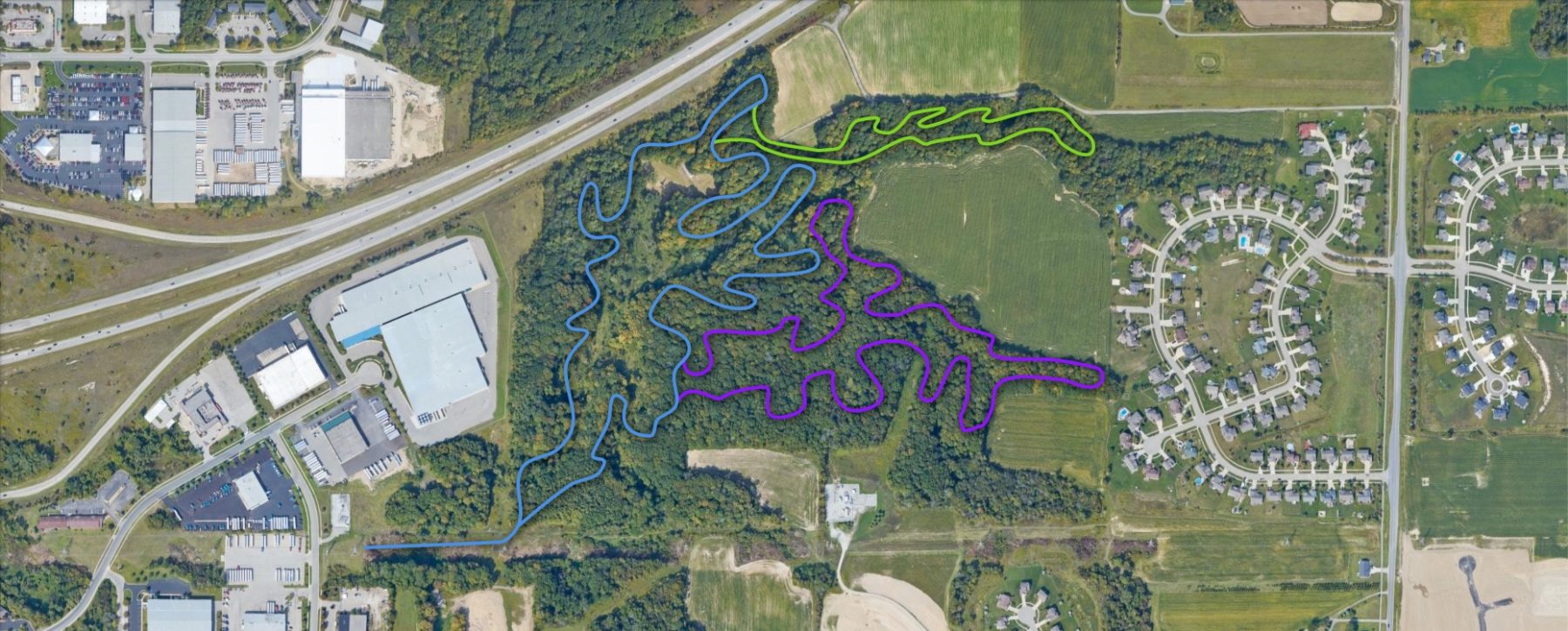 Targeting 5-7 miles of professionally built single track on approximately 150 wooded acres featuring multiple large ravines.