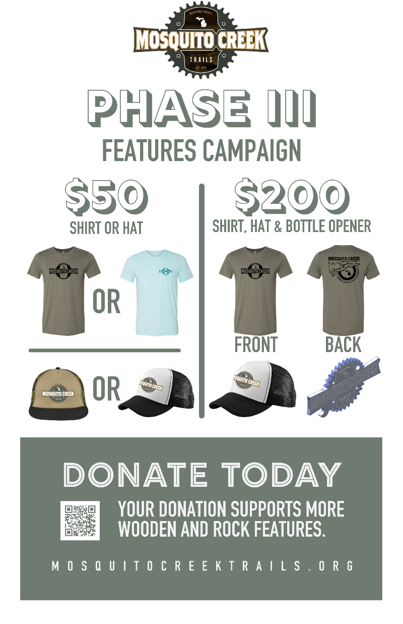 Lastly: there’s still time to donate and grab some MC goodies before the opening! Blue tees have been added and the original green tees are also still available (fairly limited quantities left in both). We hope to see you all out at the trail on June 19th!